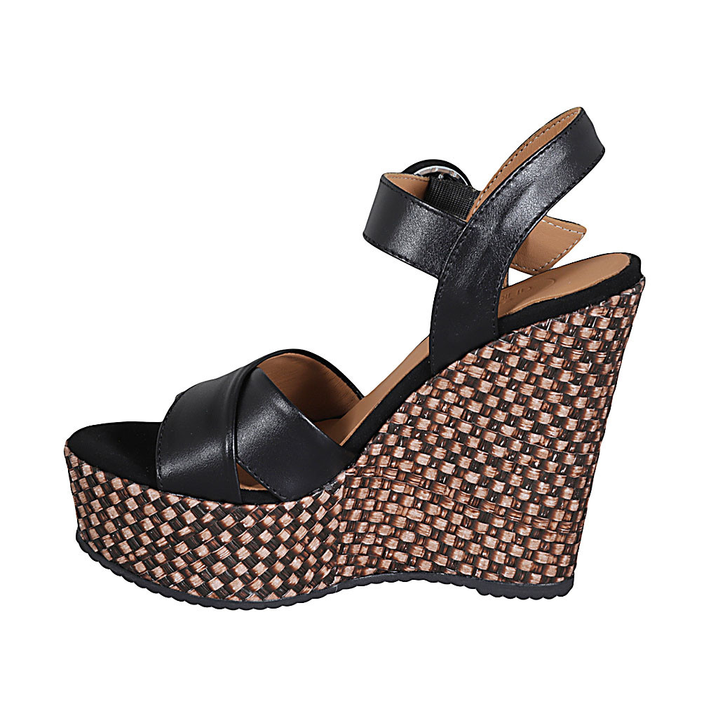 Sandale entredoigt pour femmes avec accessoire en cuir noir talon 1