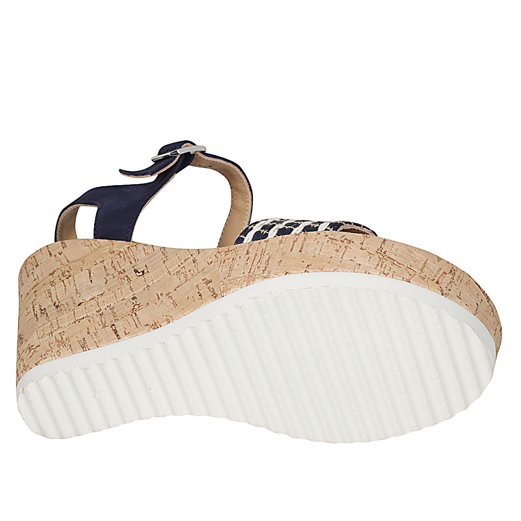 Sandale pour femmes en cuir blanc et daim imprimé beige et argent avec plateforme et talon compensé 9