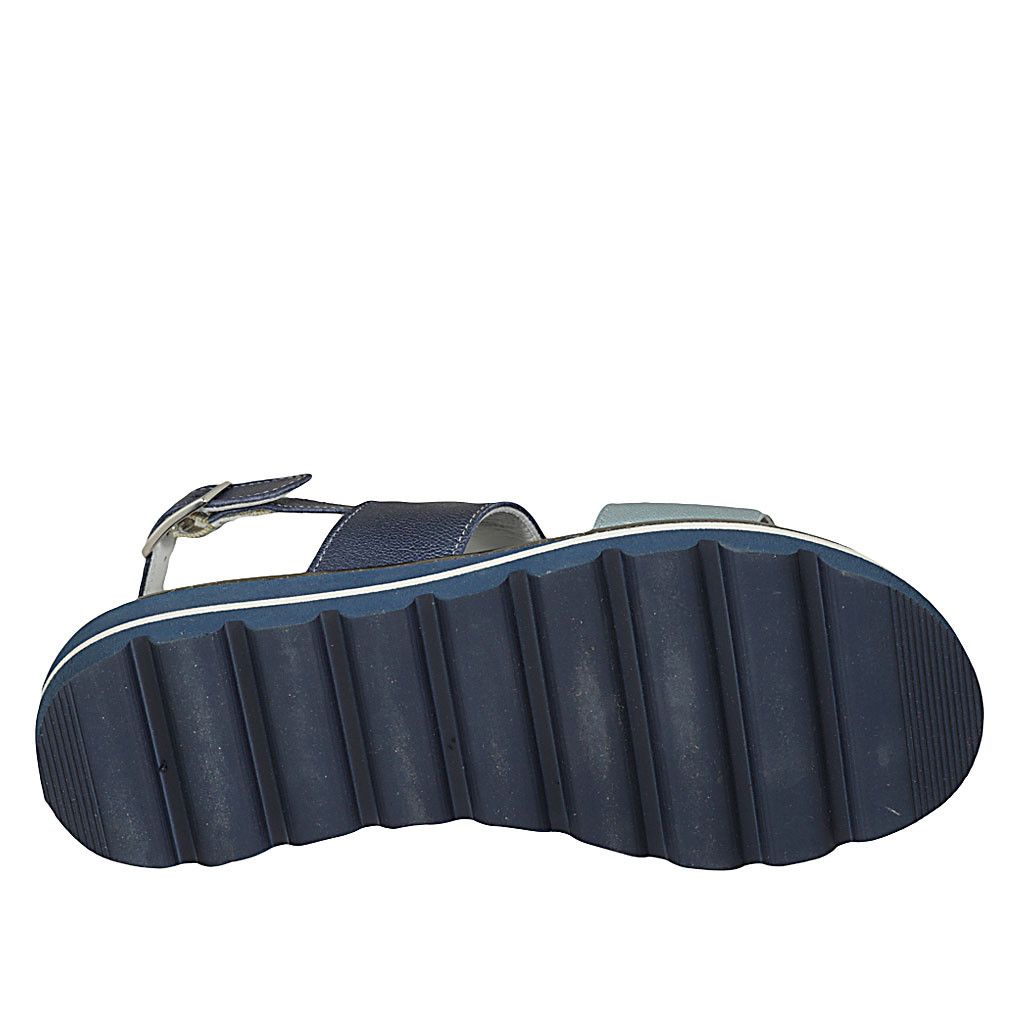 Sandale pour femmes avec chaîne en cuir lamé bleu et bleu clair talon compensé 3 - Pointures disponibles:  42
