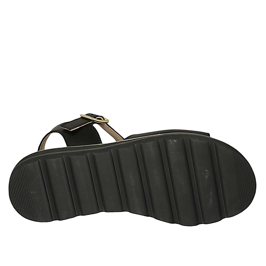 Sandale pour femmes en cuir noir avec courroie et accessoire talon compensé 3 - Pointures disponibles:  42