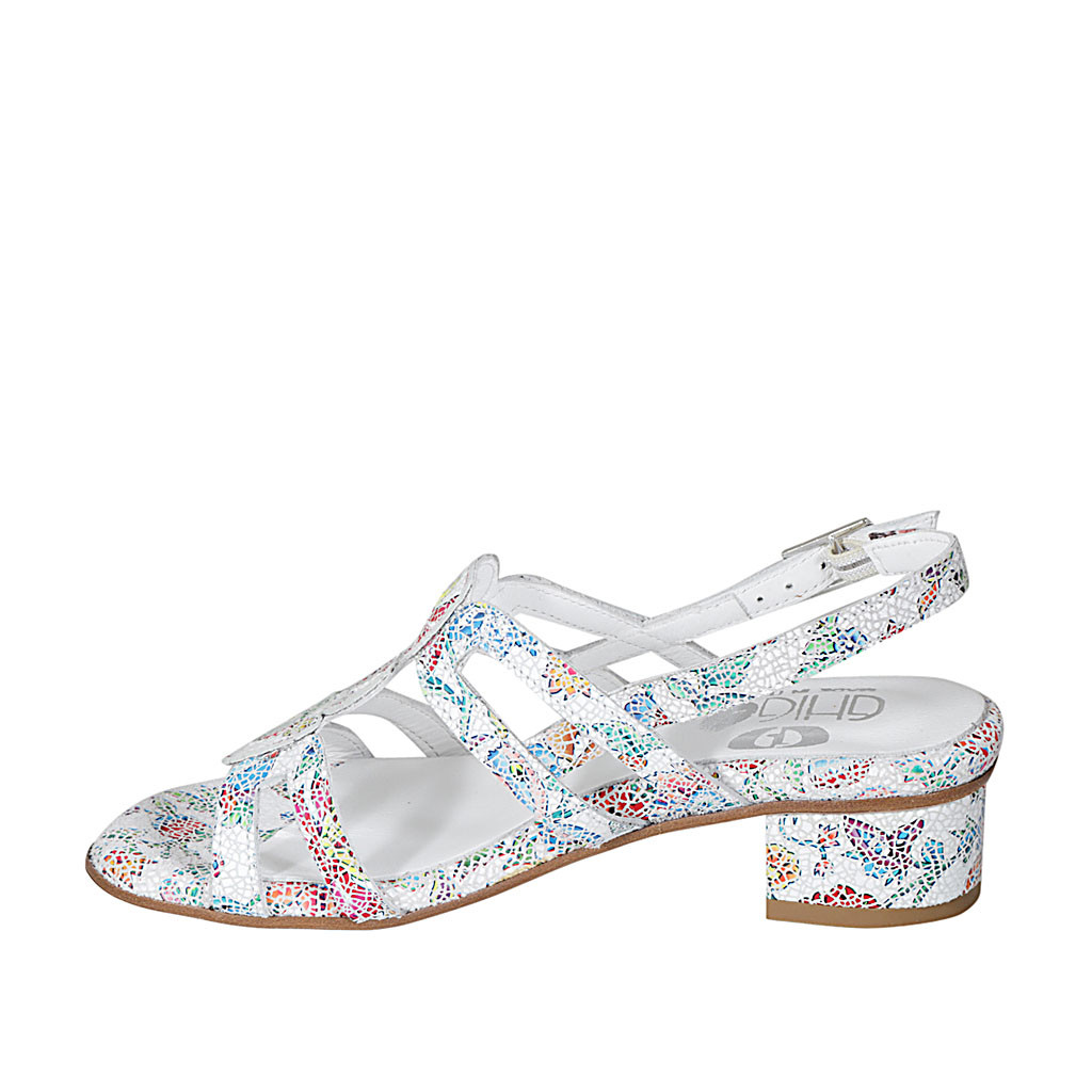 Sandale pour femmes en cuir blanc imprimé mosaïque multicouleur talon 4 - Pointures disponibles:  43, 44, 45