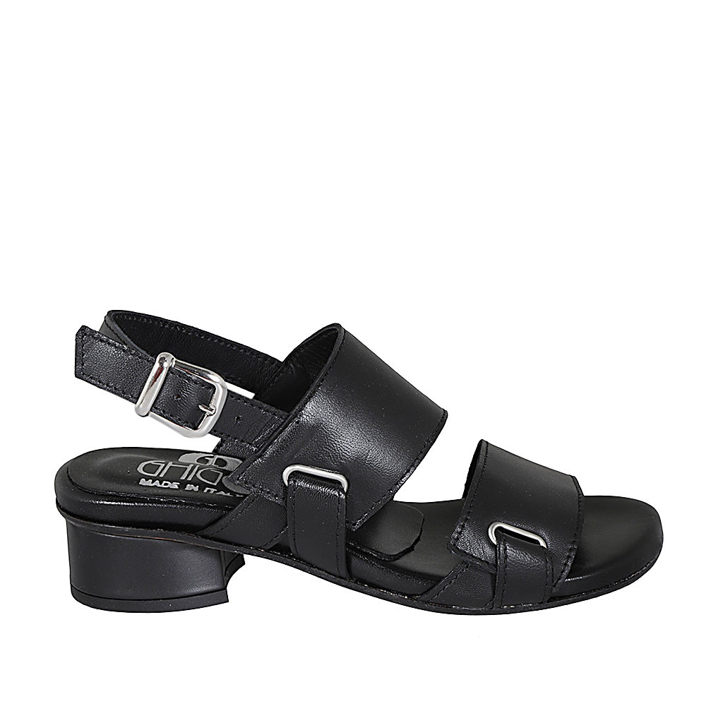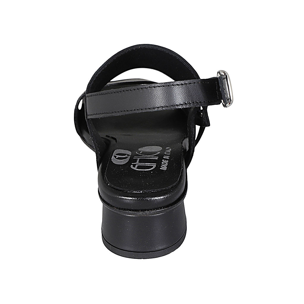 Sandale pour femmes en cuir noir talon 4 - Pointures disponibles:  32, 45