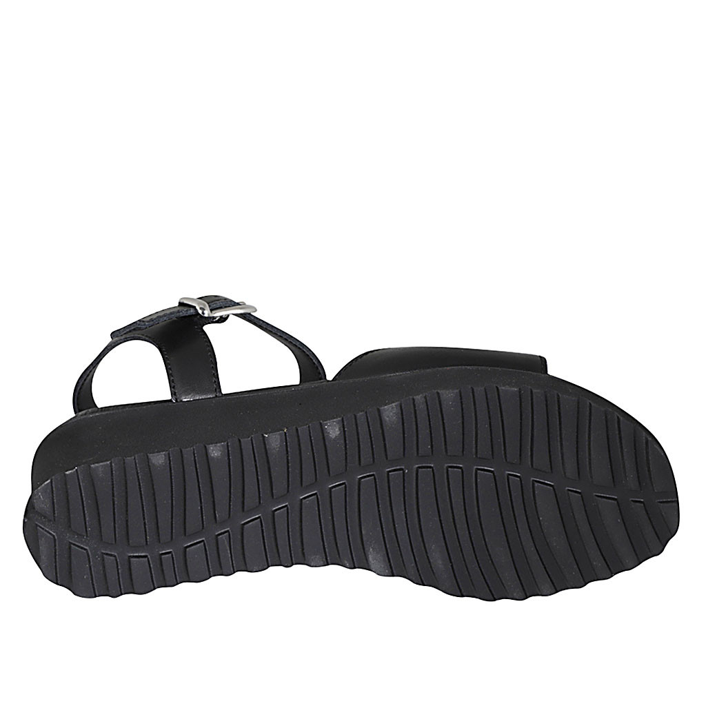 Sandale pour femmes avec courroie en cuir noir talon compensé 4 - Pointures disponibles:  42