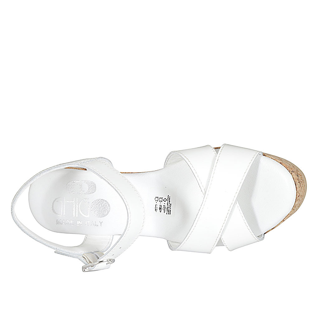 Sandale pour femmes avec courroie à la cheville en cuir et cuir verni rose talon 7