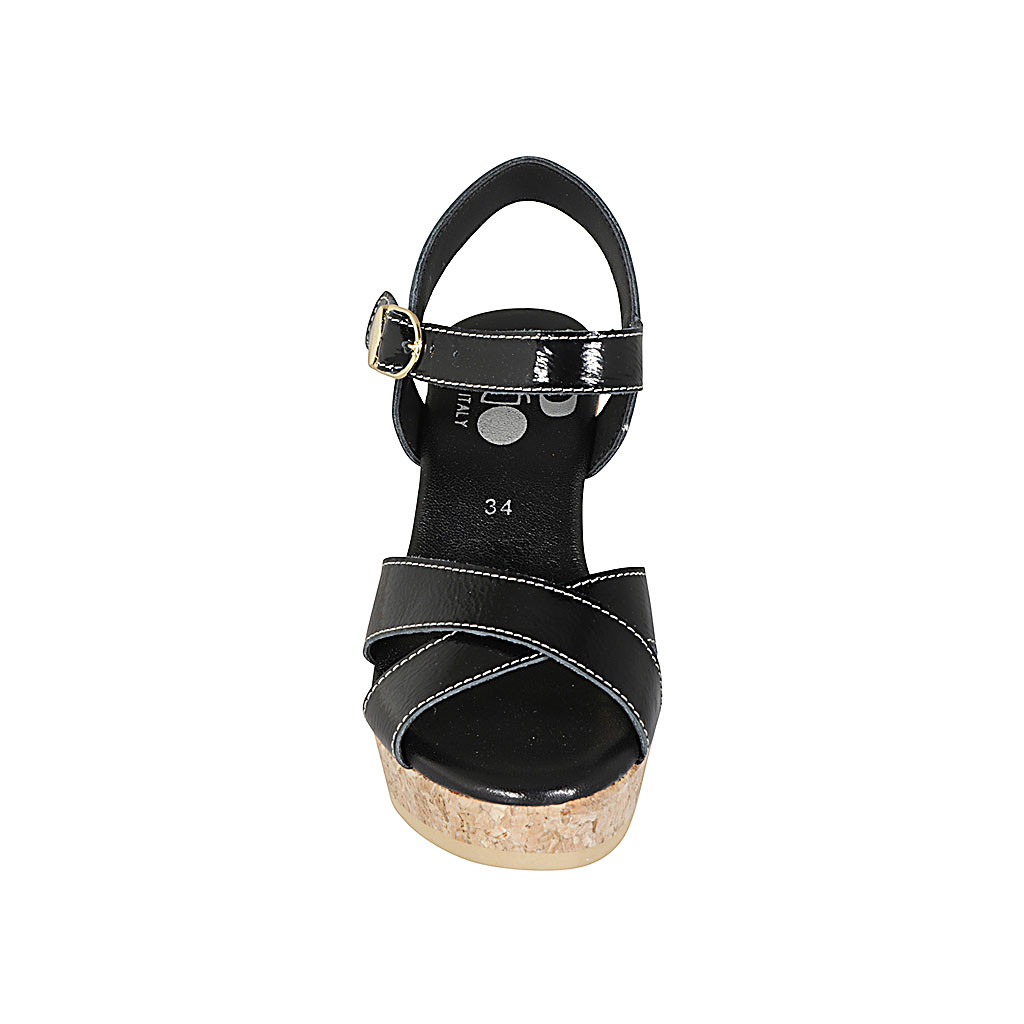 Sandale pour femmes en cuir verni noir avec courroie, plateforme et talon compensé 9 - Pointures disponibles:  42, 45