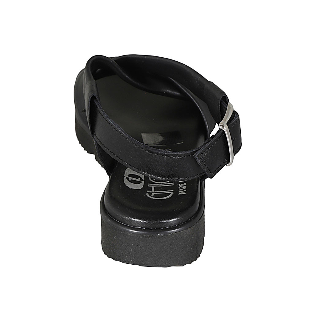 Sandale pour femmes avec bandes croisés en cuir noir talon compensé 3 - Pointures disponibles:  32