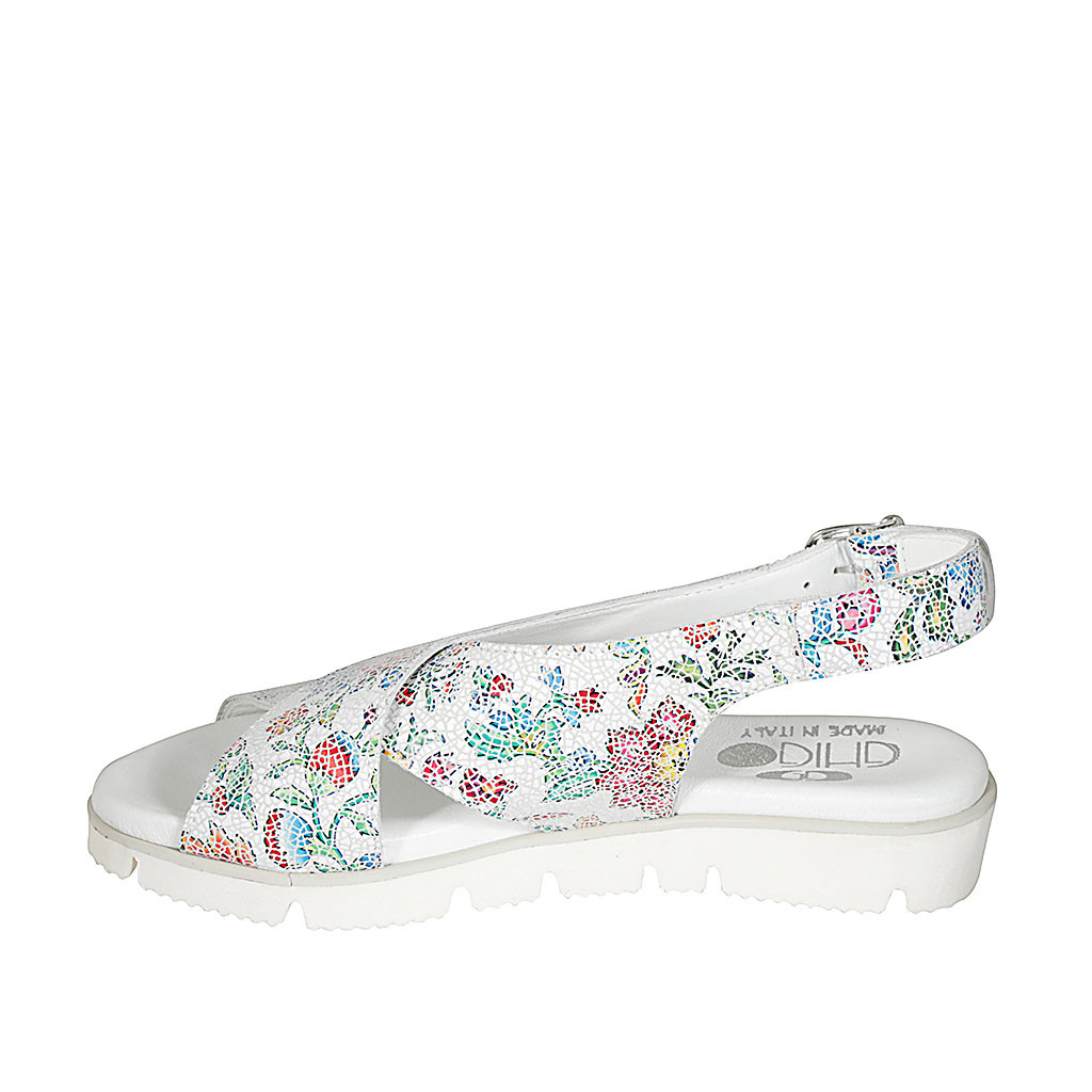 Sandale pour femmes en cuir blanc imprimé multicouleur talon compensé 3 - Pointures disponibles:  32, 42, 44
