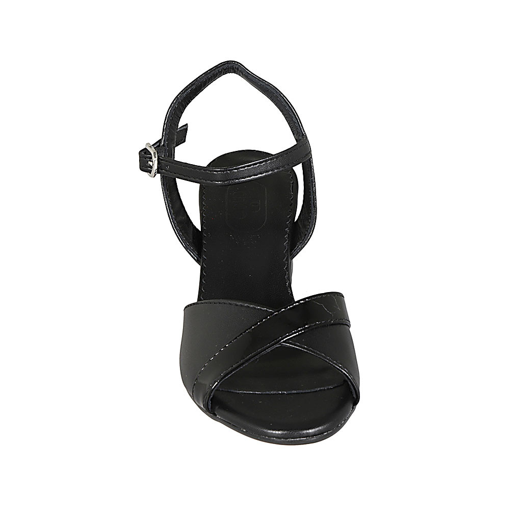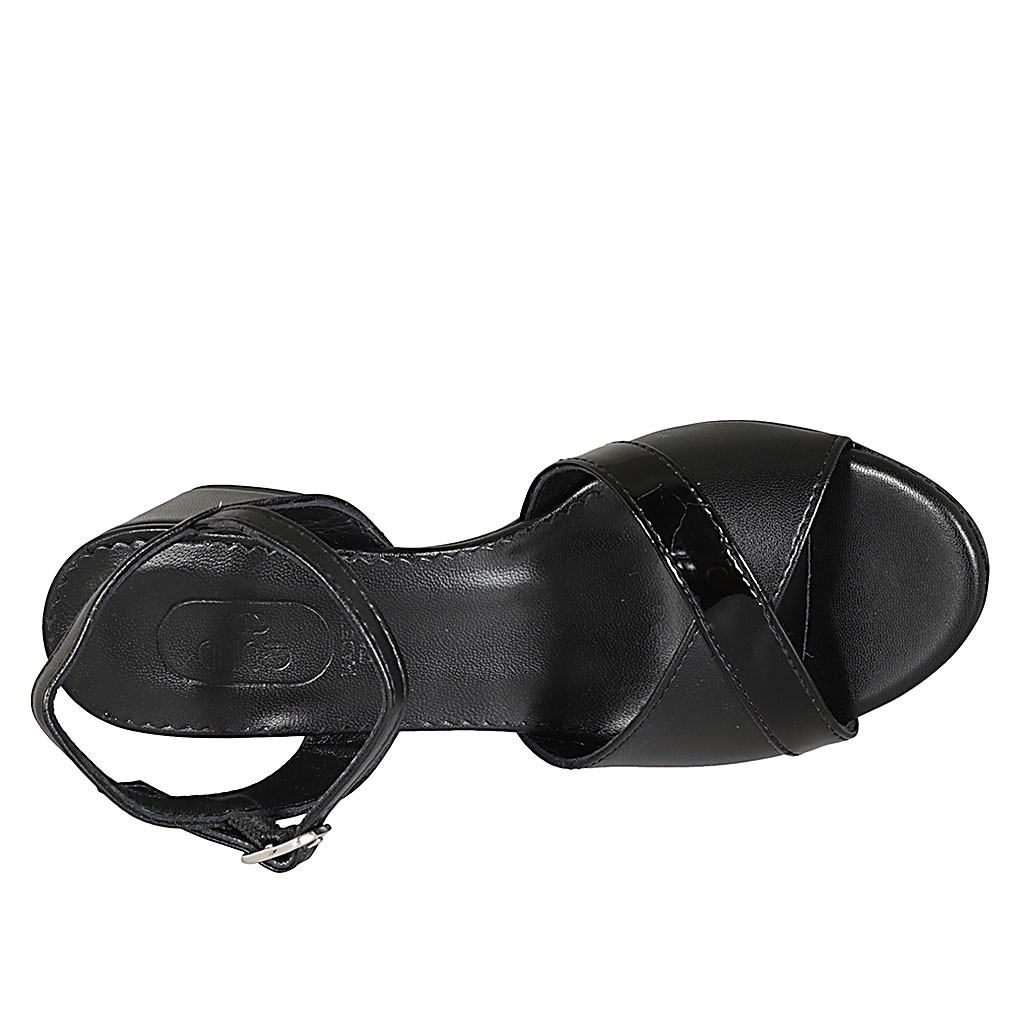 Sandale pour femmes avec courroie à la cheville en cuir et cuir verni noir talon 5 - Pointures disponibles:  42, 44