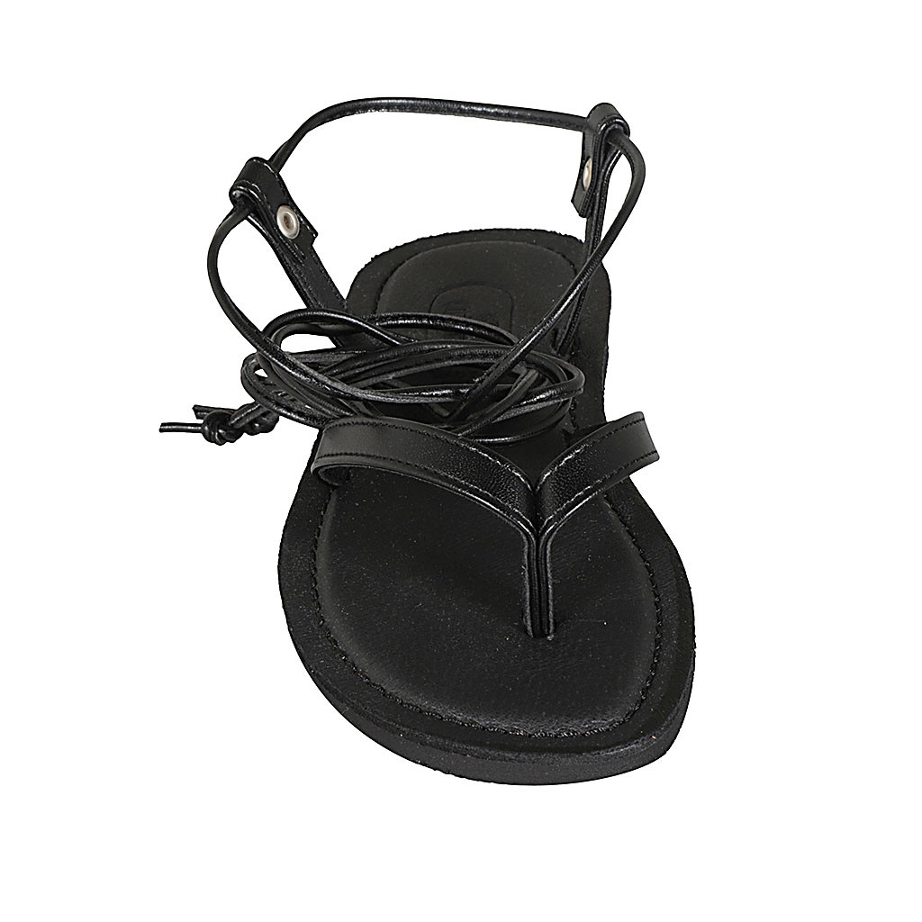 Sandale entredoigt spartiates à lacets pour femmes en cuir noir talon 1 - Pointures disponibles:  32, 42