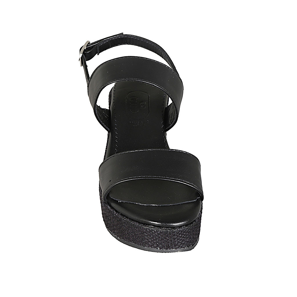 Sandale pour femmes avec plateforme en cuir noir talon compensé 6 - Pointures disponibles:  42, 43