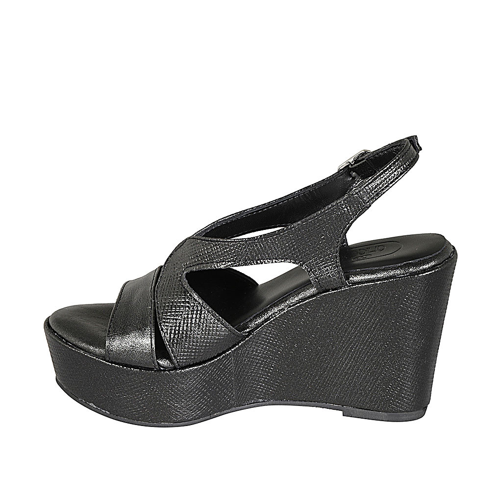 Sandale pour femmes en cuir imprimé noir avec plateforme et talon compensé 9 - Pointures disponibles:  31, 42, 43