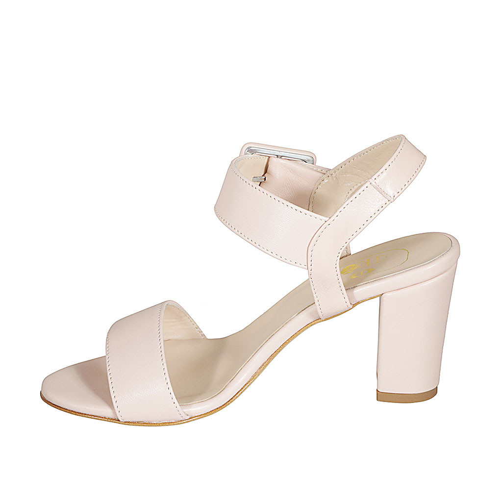 Sandale pour femmes avec boucle en cuir rose talon 8