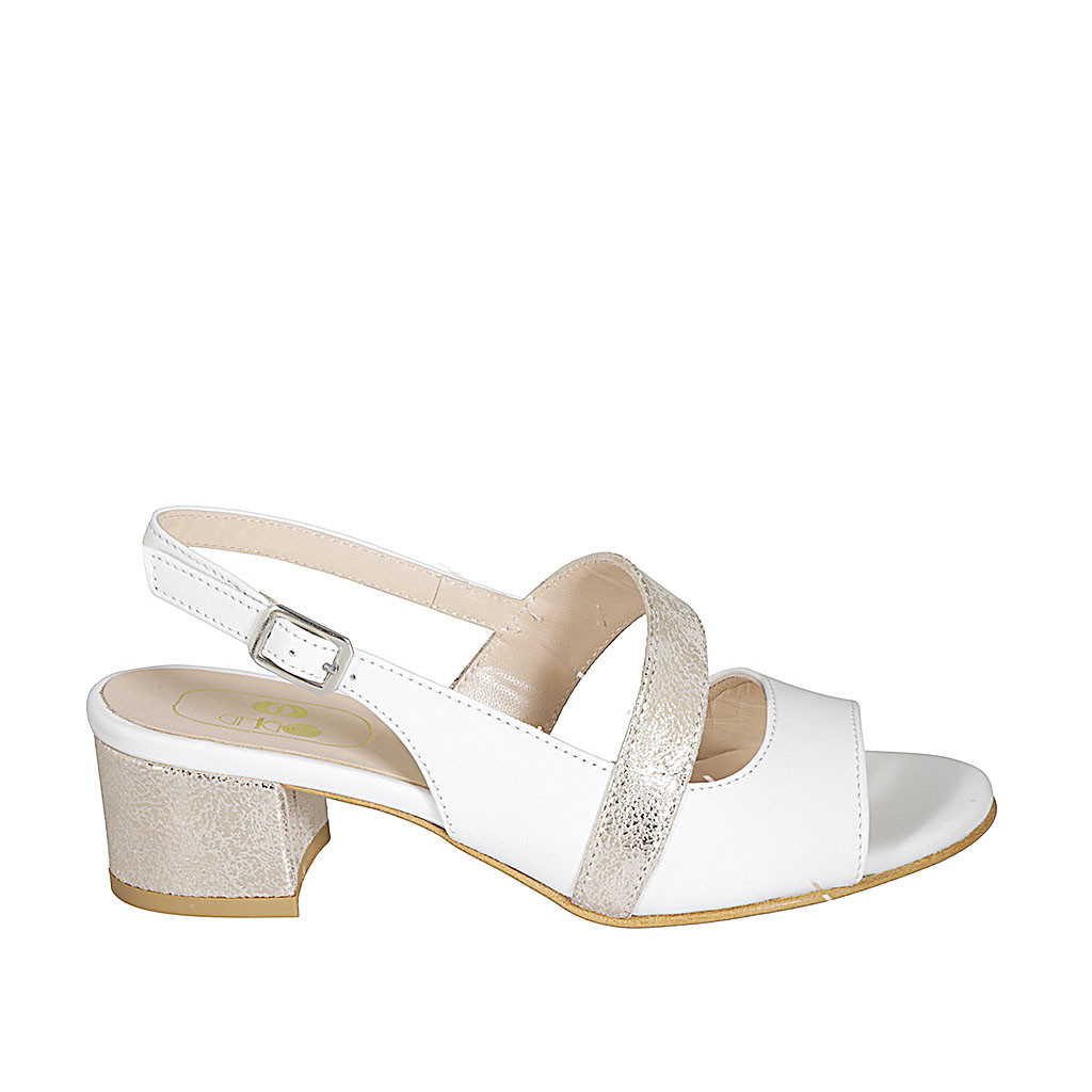 Sandale pour femmes en cuir blanc et lamé platine talon 5