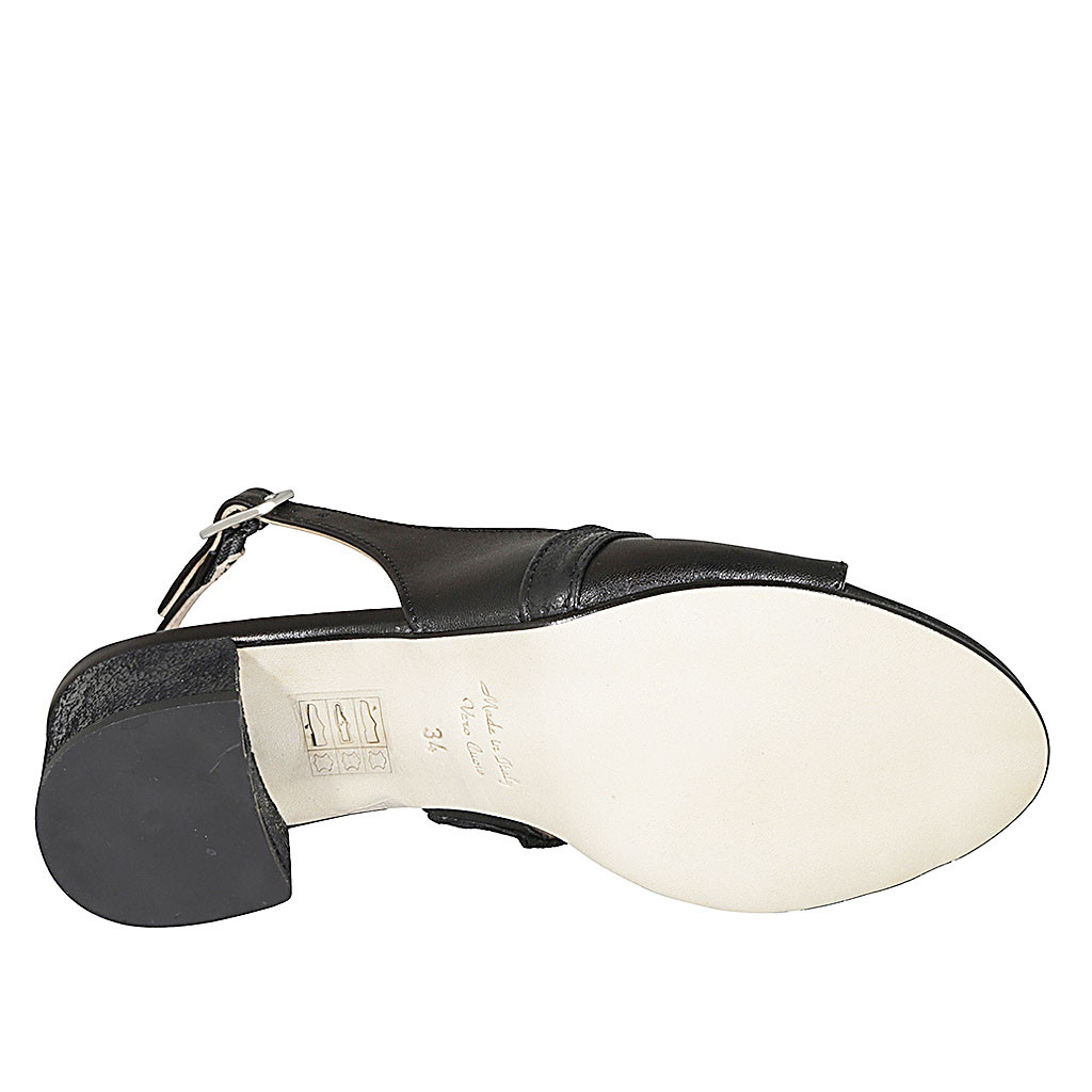 Sandale pour femmes en cuir et cuir lamé noir talon 5 - Pointures disponibles:  45