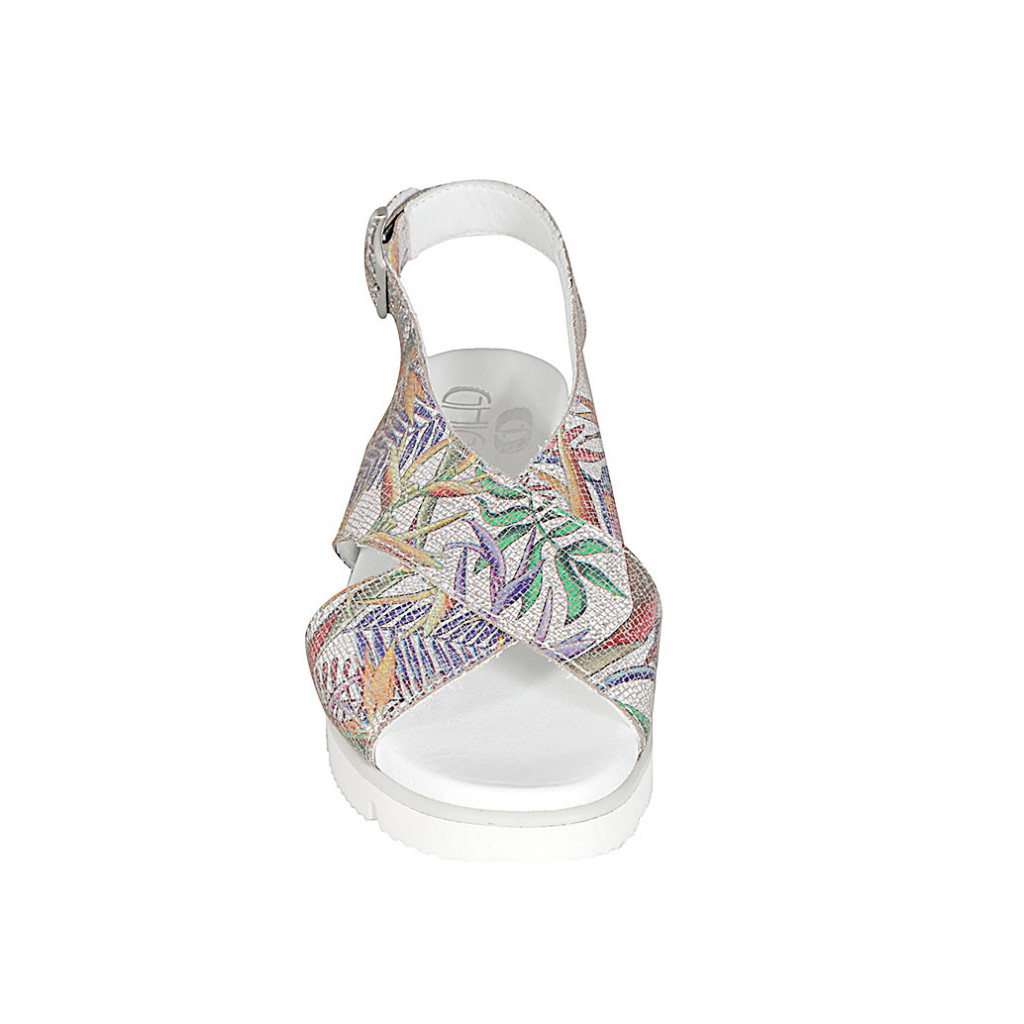 Sandale pour femmes en cuir lamé argent et imprimé mosaique talon compensé 3 - Pointures disponibles:  42