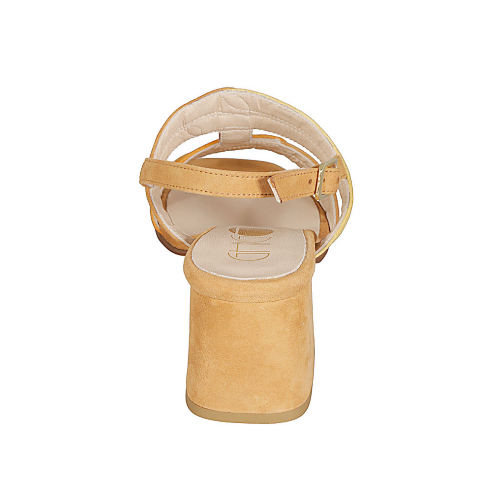 Sandale pour femmes avec double bandes en deux tones en daim cognac, jaune et orange talon 6 - Pointures disponibles:  32, 44, 45, 46