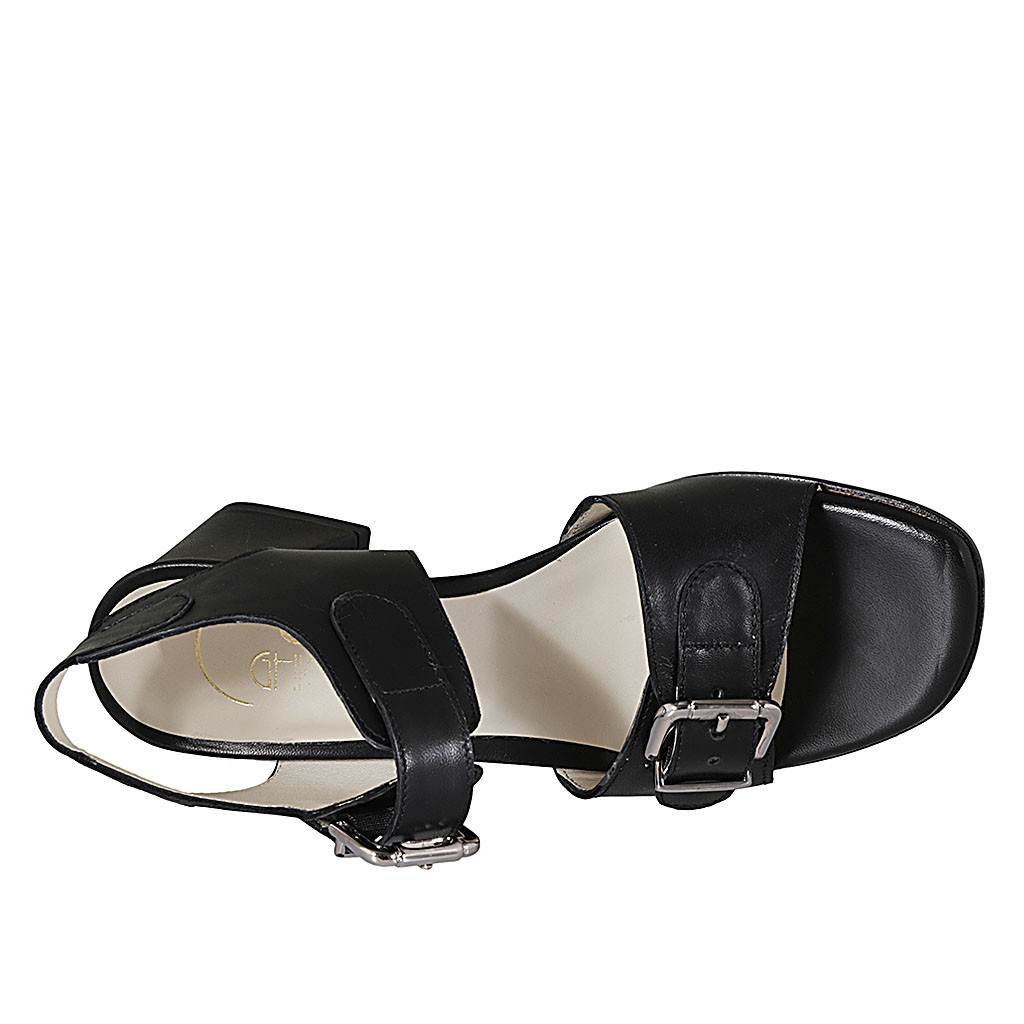 Sandale pour femmes avec boucles réglables en cuir noir talon 6 - Pointures disponibles:  32, 33, 43, 44