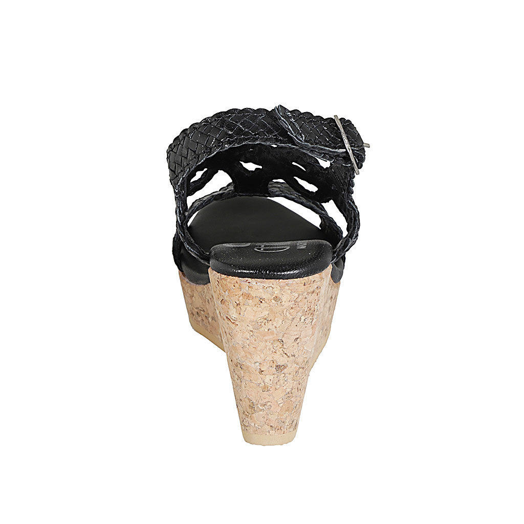 Sandale pour femmes en cuir tressé noir avec plateforme et talon compensé 9 - Pointures disponibles:  42, 43, 44