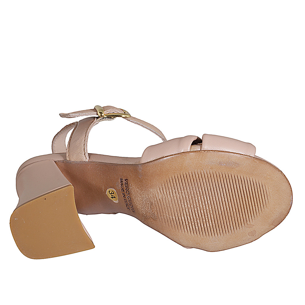 Sandale pour femmes en cuir verni cognac et orange talon compensé 9