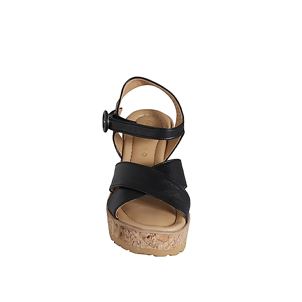 Sandale pour femmes en cuir noir avec courroie et plateforme talon compensé 9 - Pointures disponibles:  35