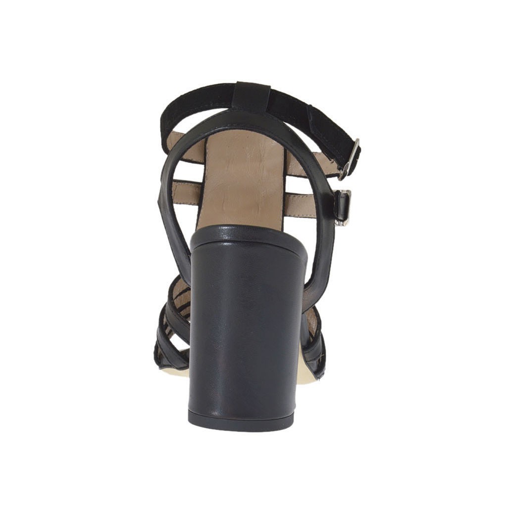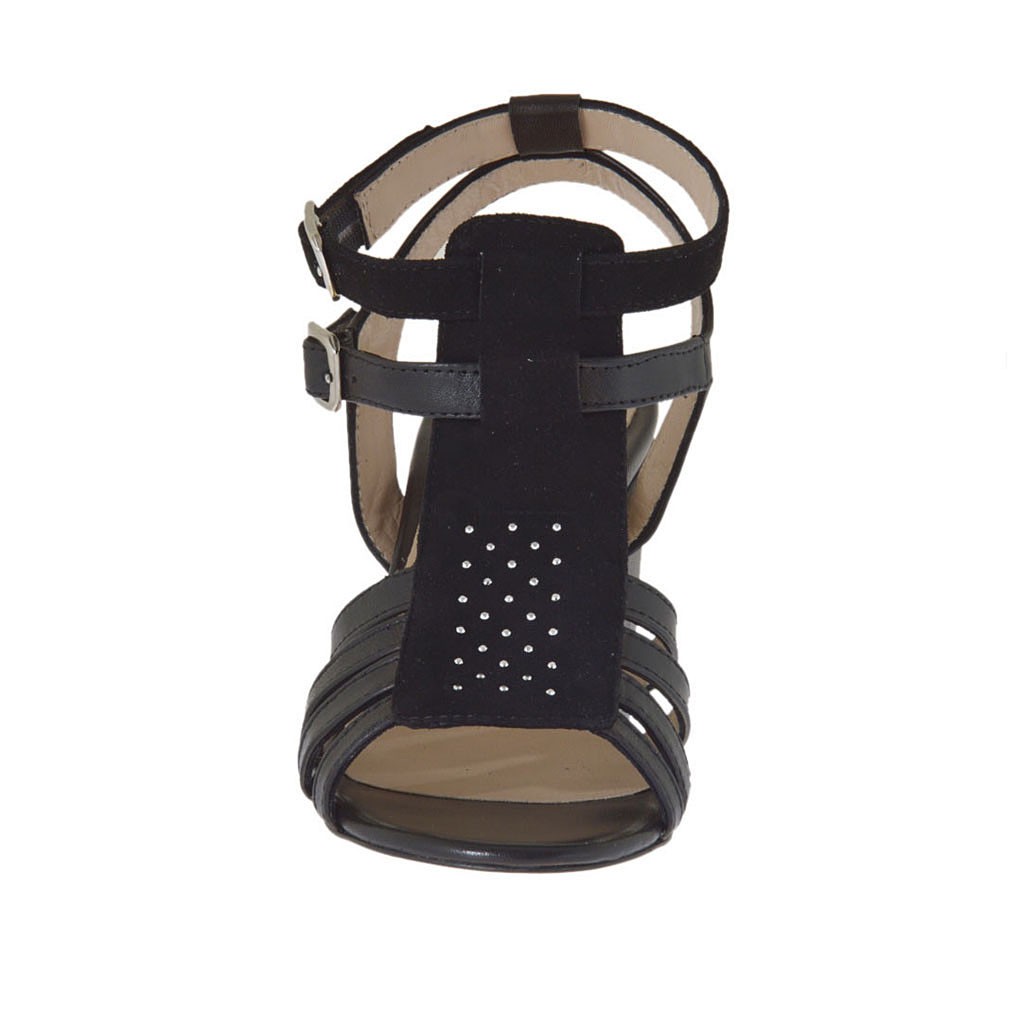 Sandale pour femmes avec courroies et strass en cuir et daim noir talon 8 - Pointures disponibles:  42