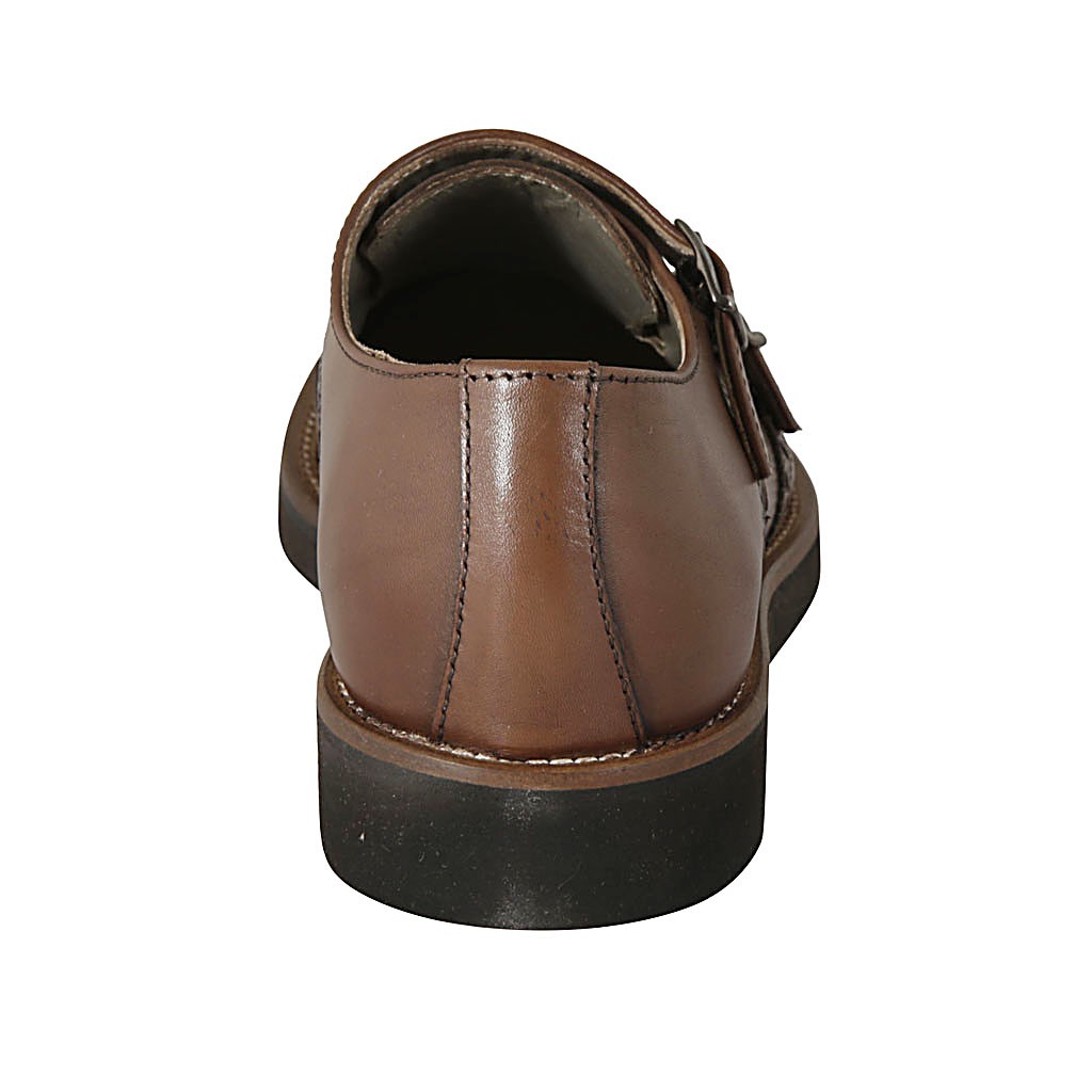 Chaussure derby élégant à lacets et bout droit pour hommes en cuir marron foncé