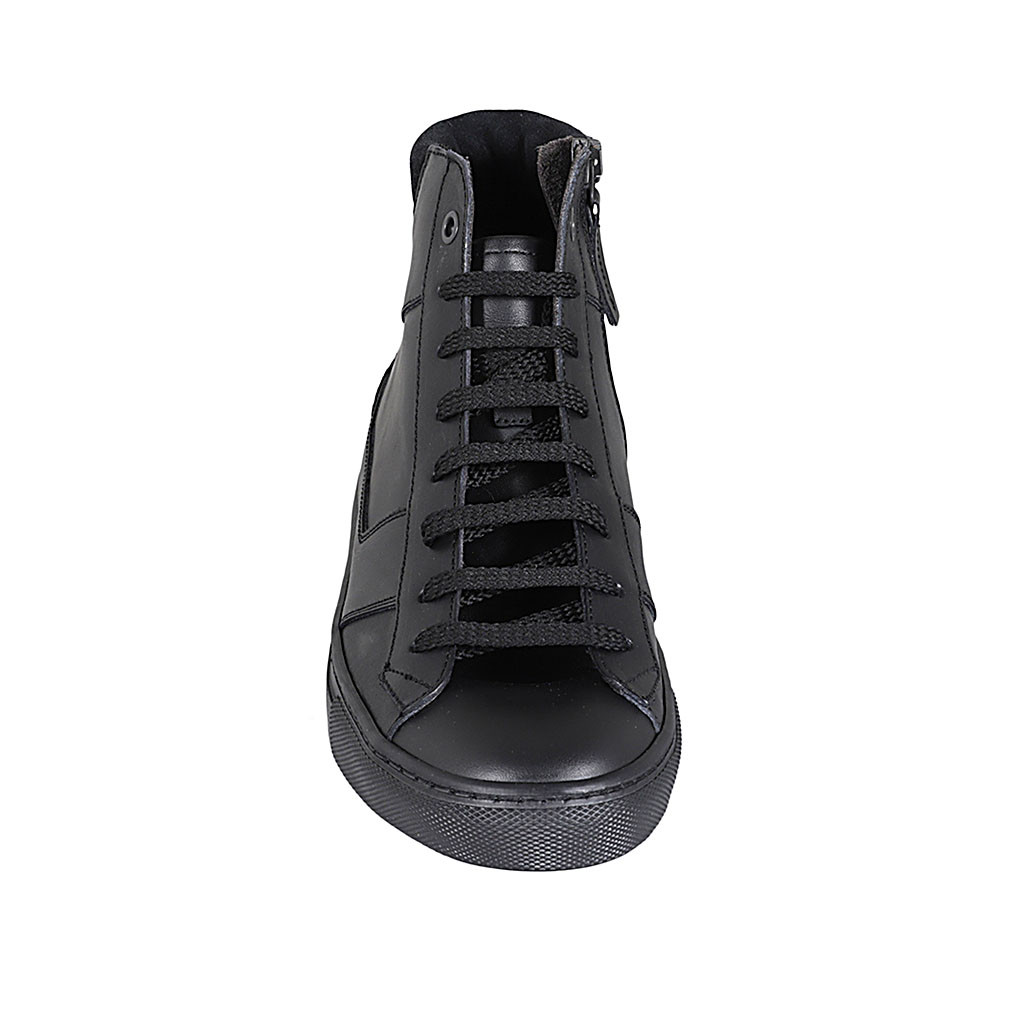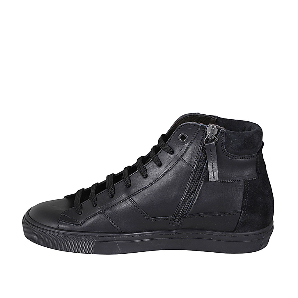 Chaussure à lacets pour hommes avec semelle amovible et fermeture èclair en cuir et daim noir
