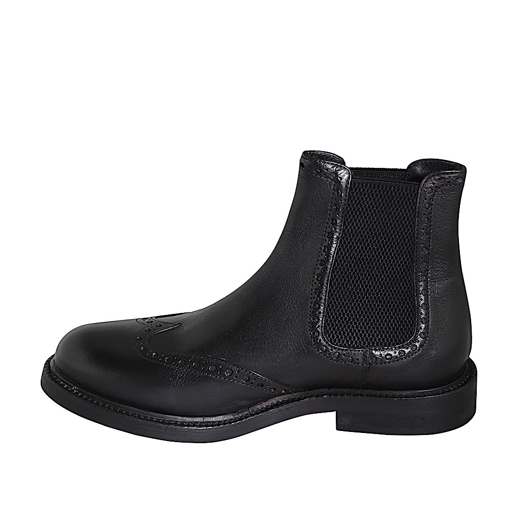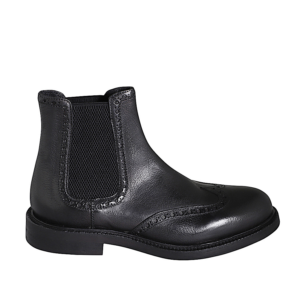 Bottine avec élastiques et bout golf pour hommes en cuir noir