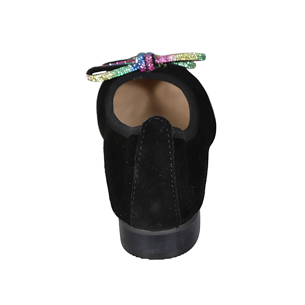 Mocassino a punta da donna in camoscio nero e maculato con tacco 1