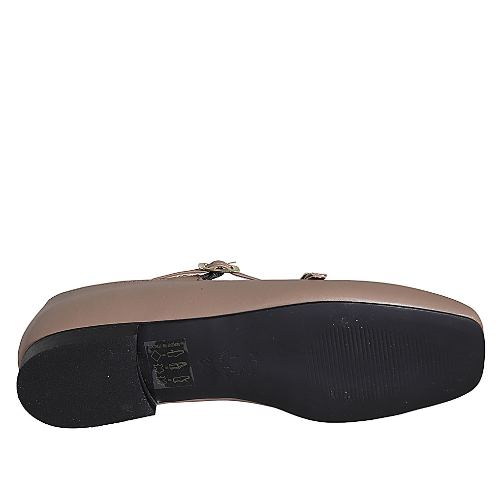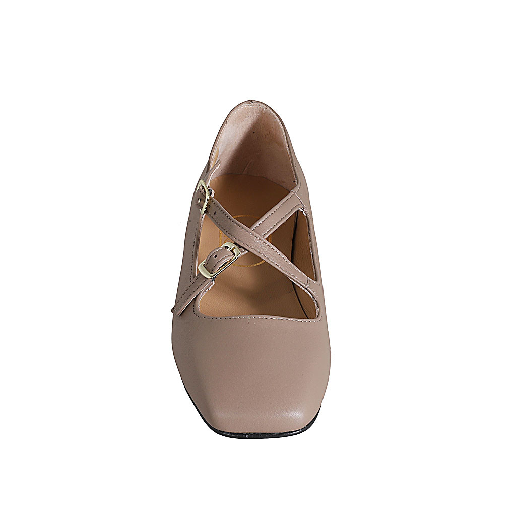 Mary Jane da donna con punta squadrata e cinturini in pelle nude tacco 1