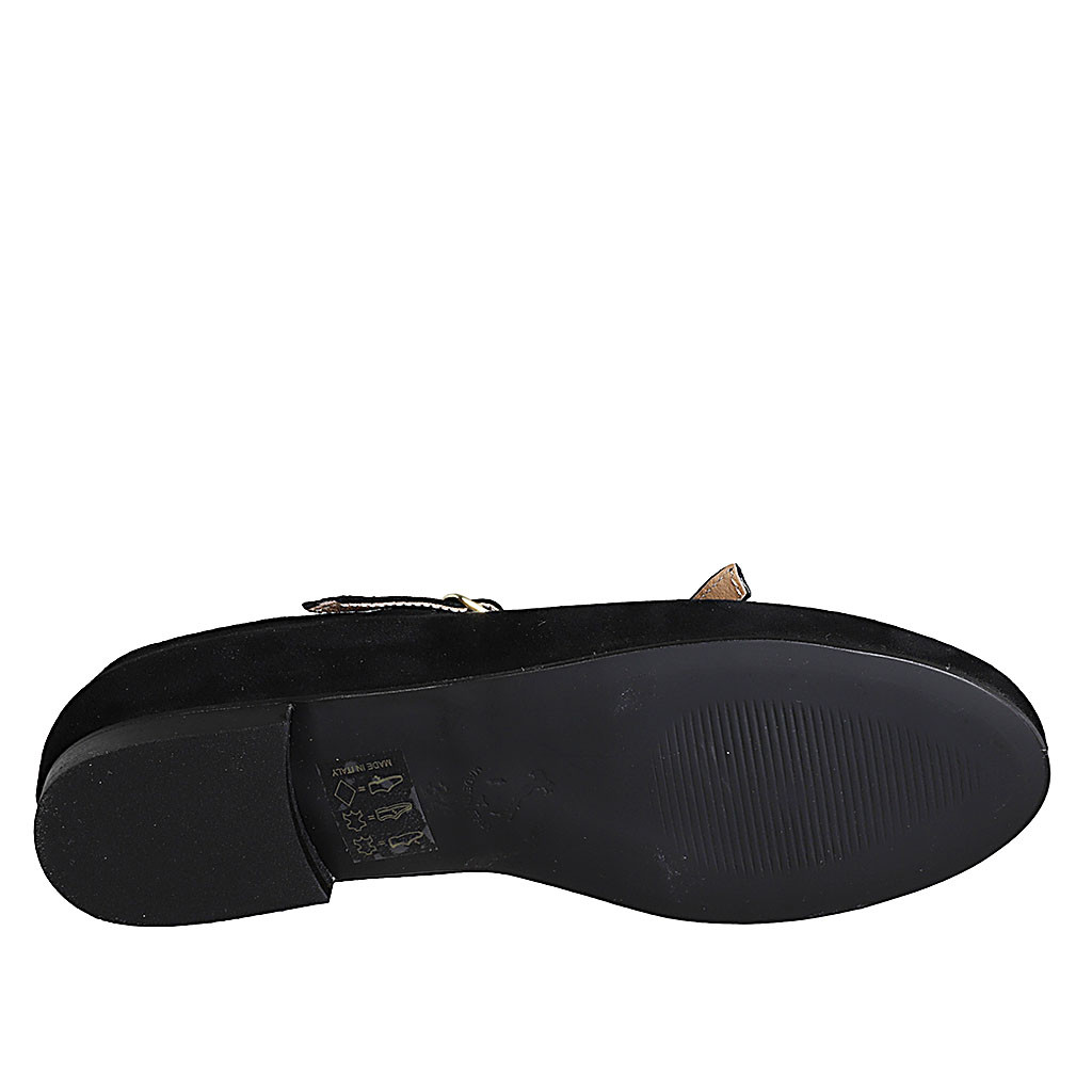 Mary Jane da donna con punta tonda e cinturini in camoscio nero tacco 1