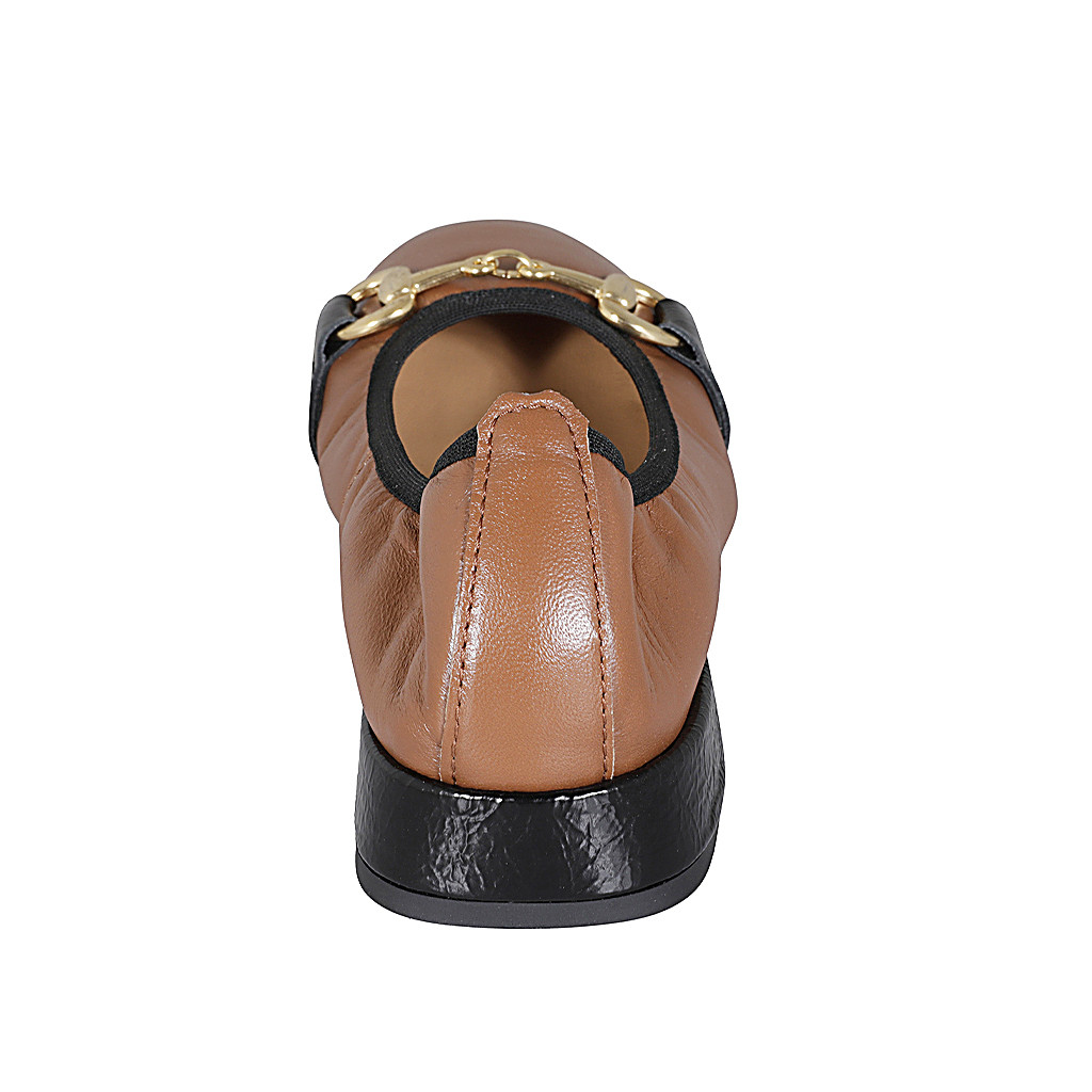 Ballerina da donna con accessorio in pelle marrone chiaro e vernice nera tacco 3