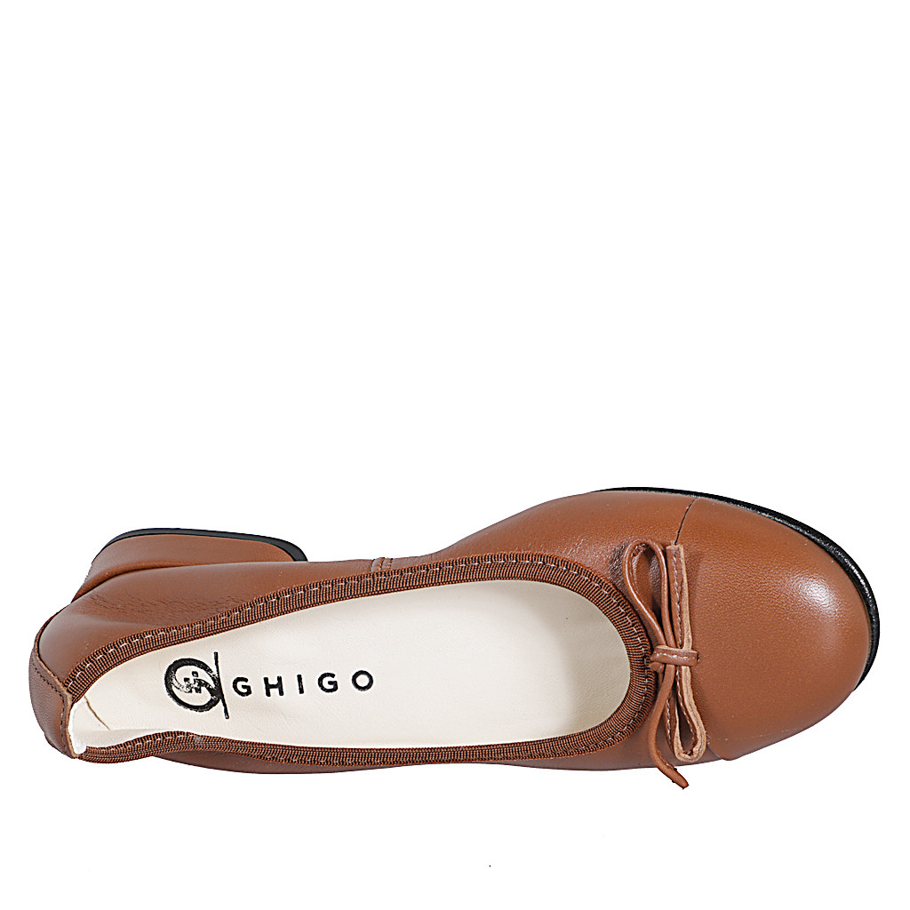 Ballerina da donna con puntale e fiocco in pelle marrone tacco 2 - Misure disponibili: 33, 35, 42, 43, 46
