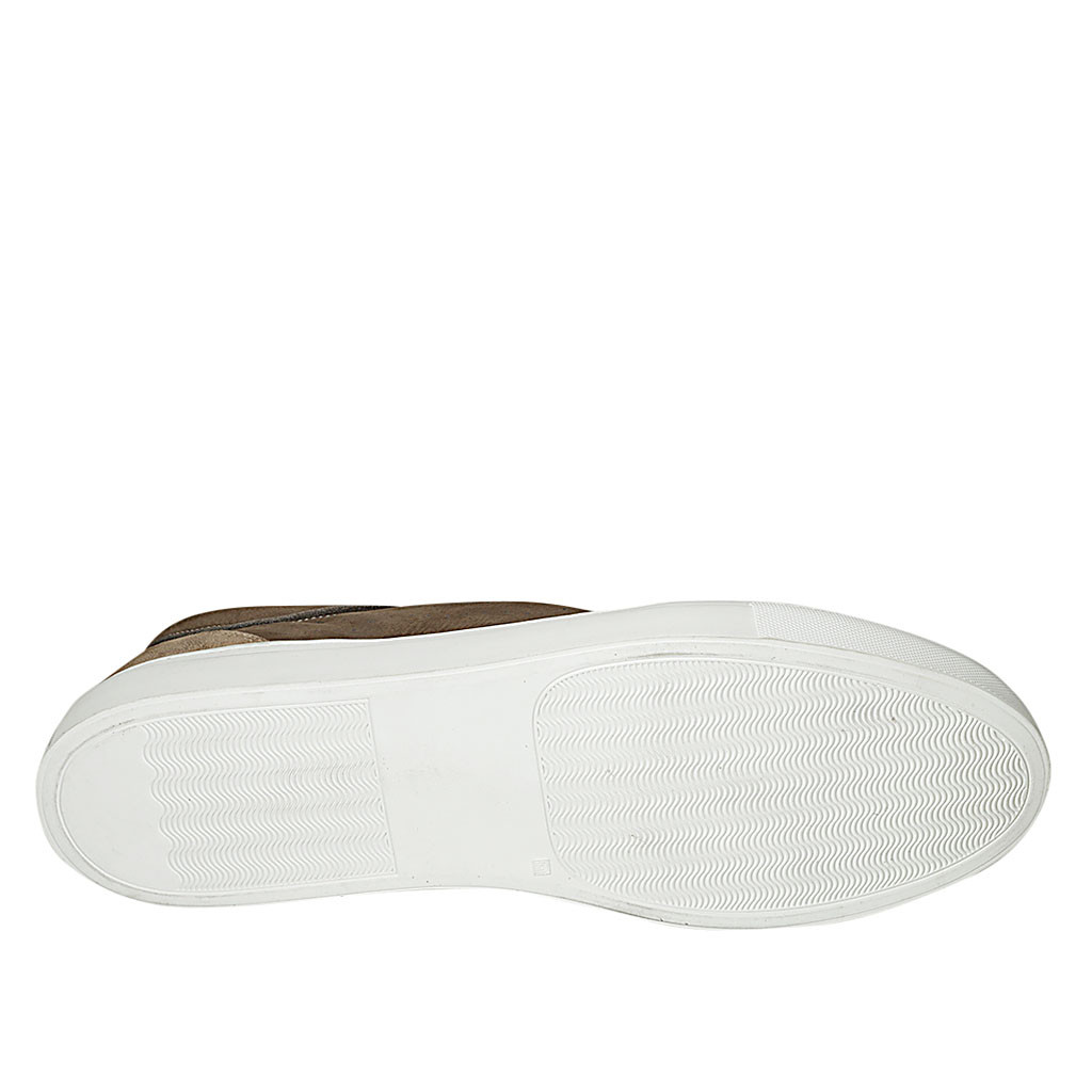 Scarpa stringata da uomo con plantare estraibile in camoscio e nabuk forato marrone - Misure disponibili: 47