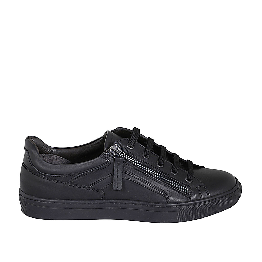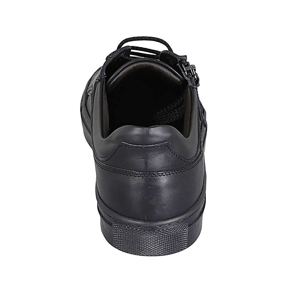 Scarpa sportiva stringata con cerniera e plantare estraibile da uomo in pelle nera - Misure disponibili: 36, 37, 38, 47, 49, 54