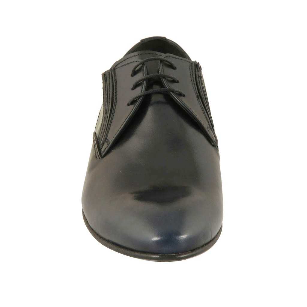 Scarpa derby elegante da uomo stringata con elastici a forma affusolata in pelle liscia blu - Misure disponibili: 47, 50