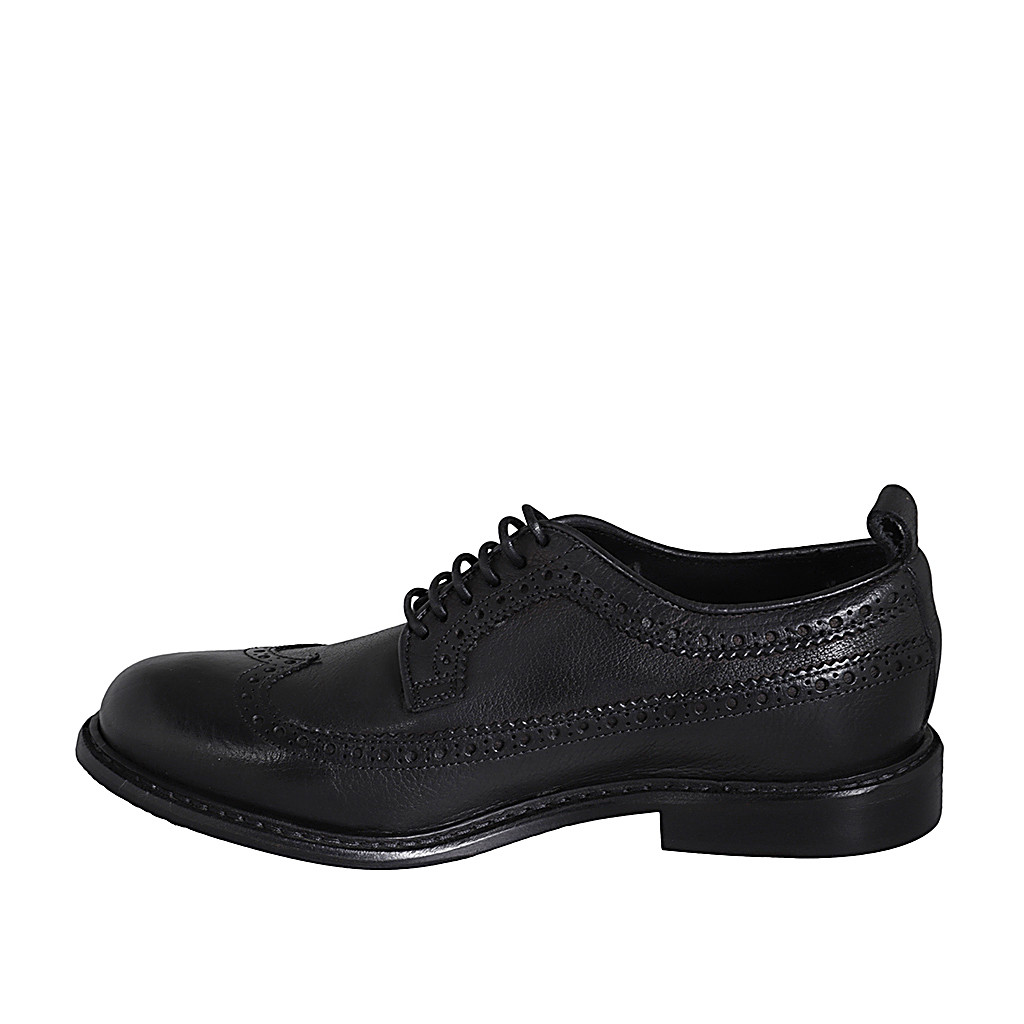 Scarpa da uomo stringata derby di alta qualità con decorazione coda di rondine in pelle nera - Misure disponibili: 36, 38, 50, 51, 52, 54