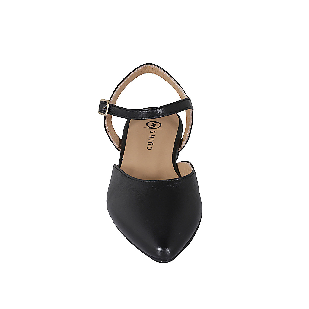 Decolté aperta dietro a punta da donna in camoscio cuoio con accessorio oro tacco 6