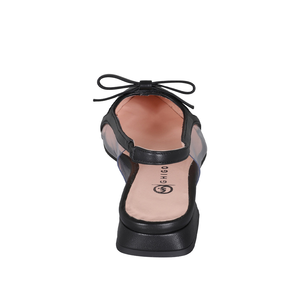 Slingback da donna con elastico e fiocco in pelle nera e vinile trasparente tacco 2