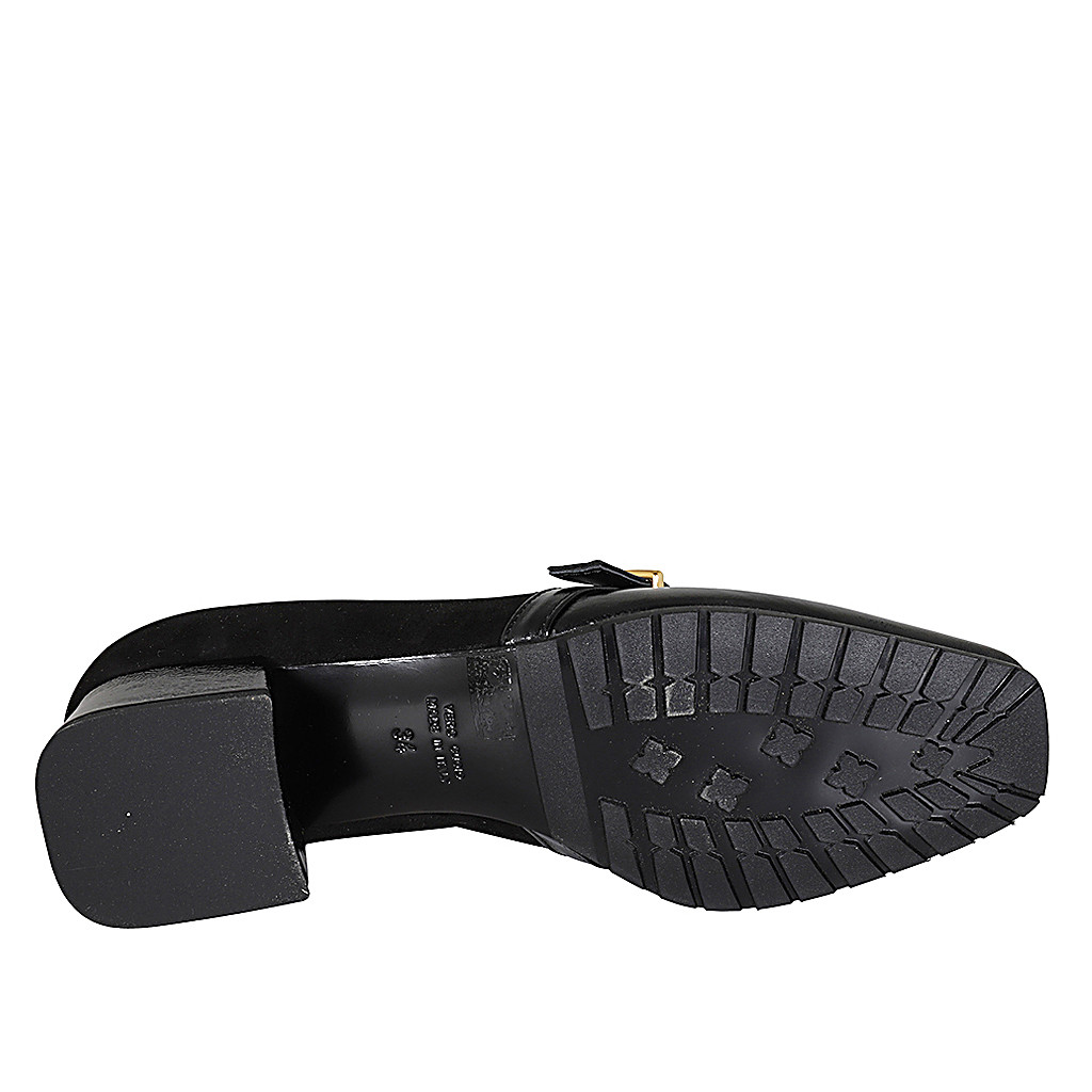 Mary Jane da donna in camoscio e vernice nera con cinturino e tacco 4