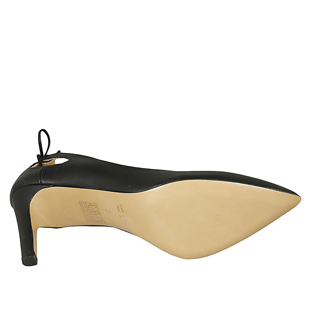 Decolté a punta da donna con laccio in pelle nera tacco 8 - Misure disponibili: 31, 32, 34