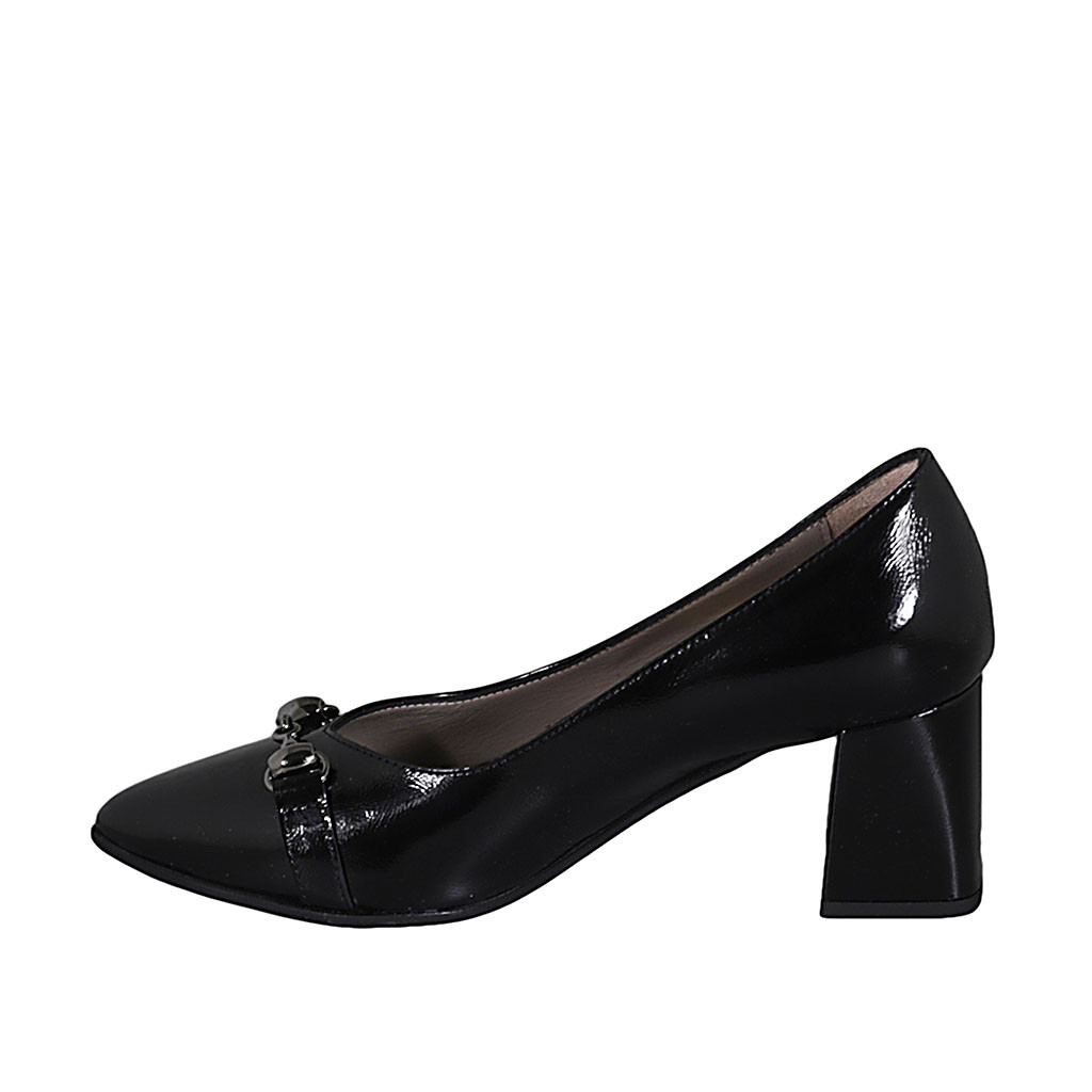 Decolté a punta da donna con accessorio in vernice nera tacco 6 - Misure disponibili: 32