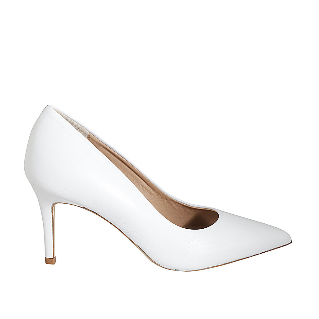Decolté a punta da donna in pelle bianca tacco 7 - Misure disponibili: 42, 43