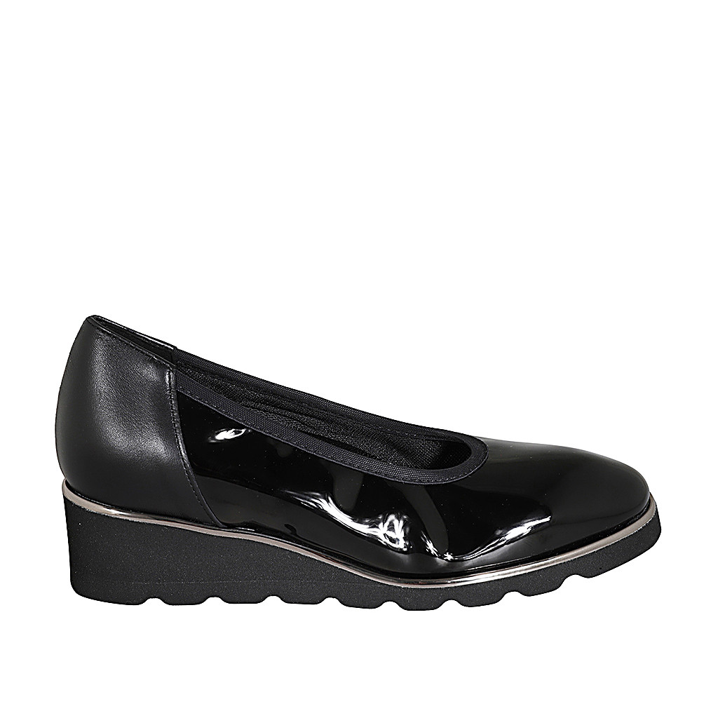 Decolté da donna con plantare estraibile in vernice e pelle nera zeppa 4 - Misure disponibili: 43