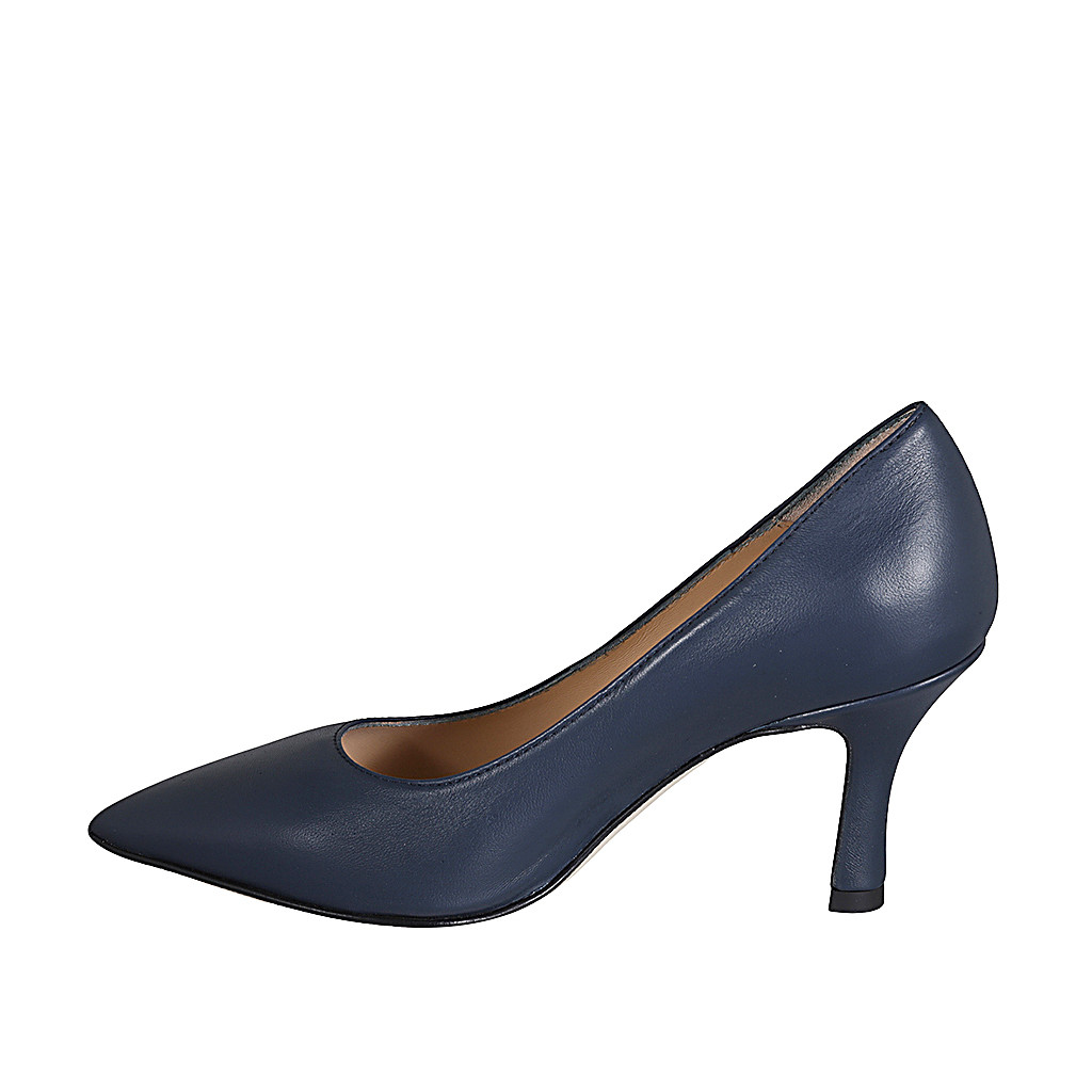 Decolté a punta in pelle blu tacco 7