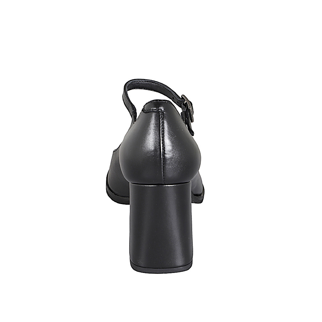Decolté Mary Jane a punta tonda in pelle nera tacco 7