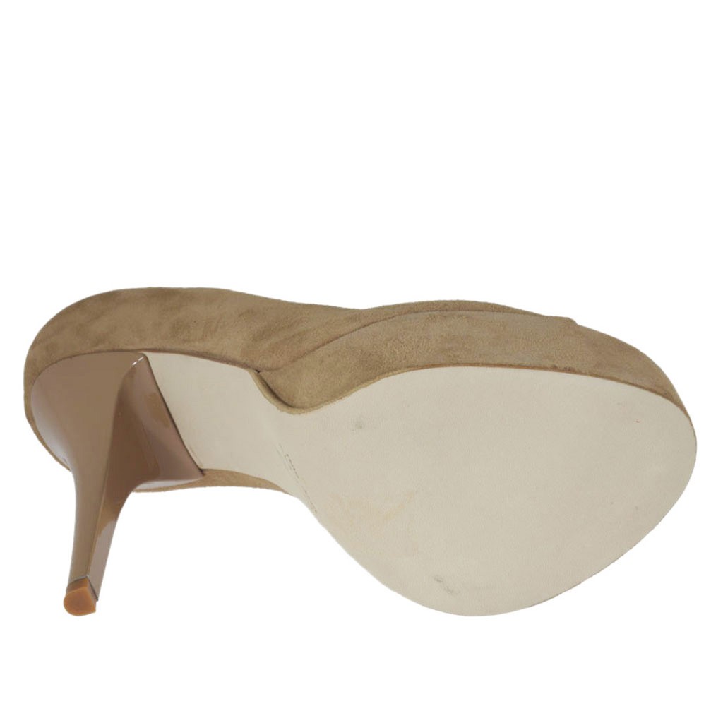 Scarpa aperta da donna con plateau in camoscio beige tacco 13