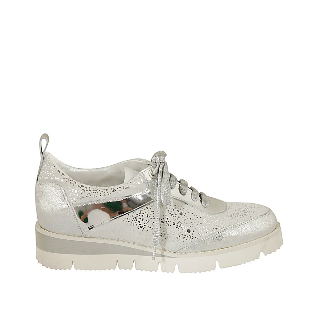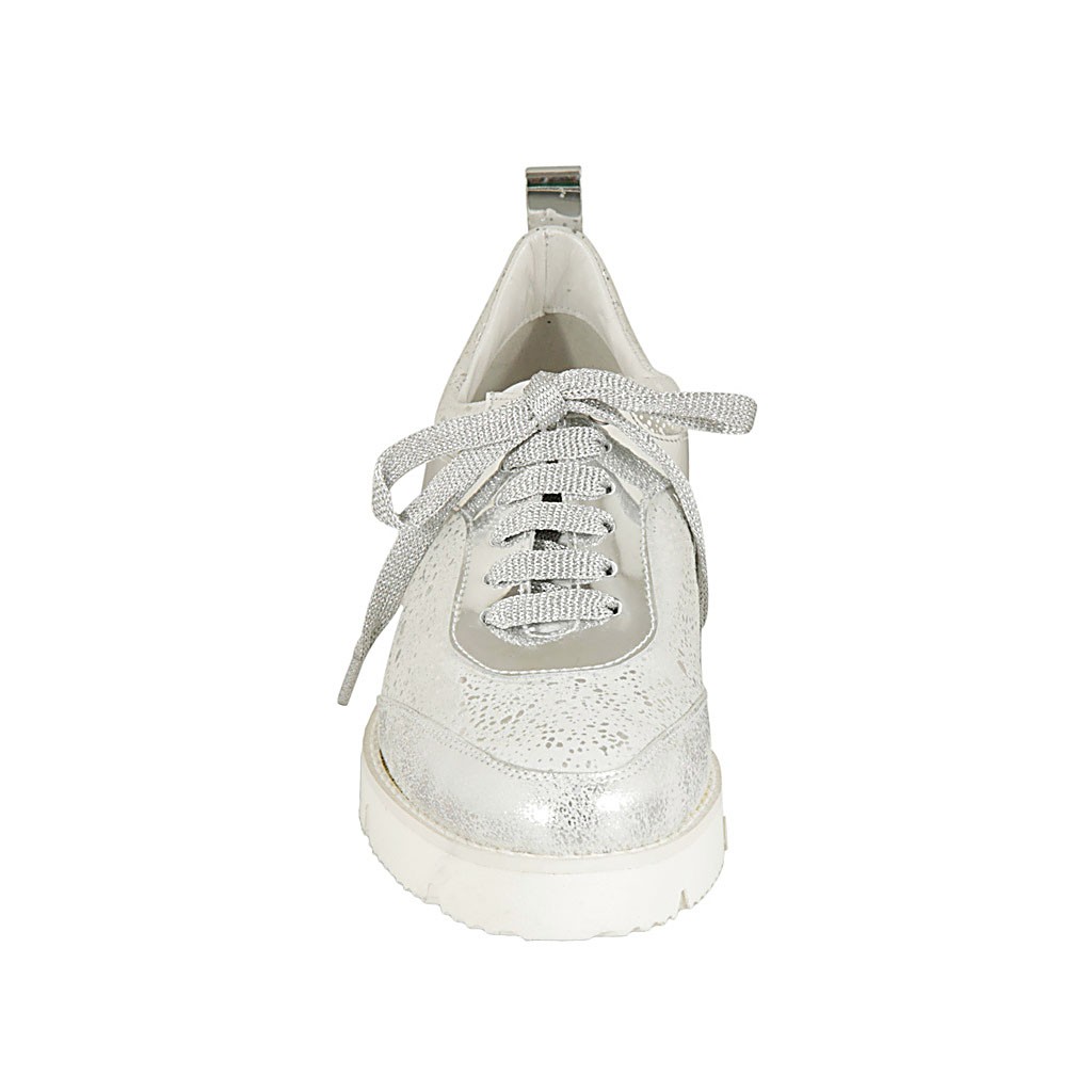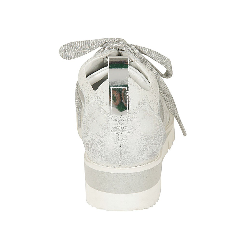 Scarpa aperta da donna con cinturino in pelle laminata platino tacco 7