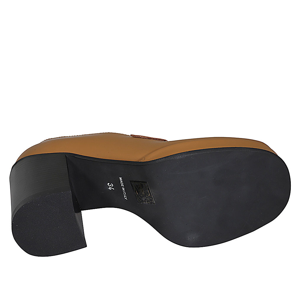 Stivaletto da donna con elastici in pelle color cuoio con lavorazione a coda di rondine tacco 5