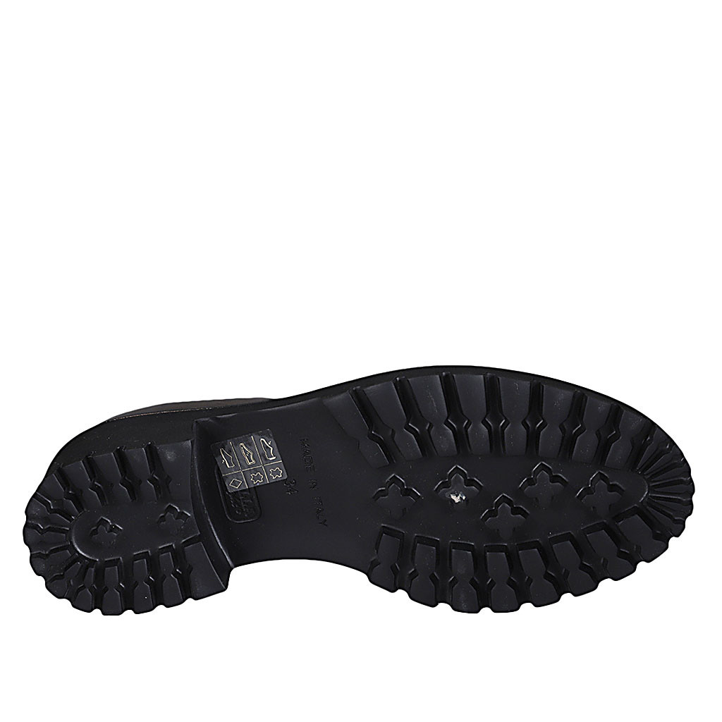 Decolté aperta dietro a punta da donna in pelle nera con accessorio argento tacco 6